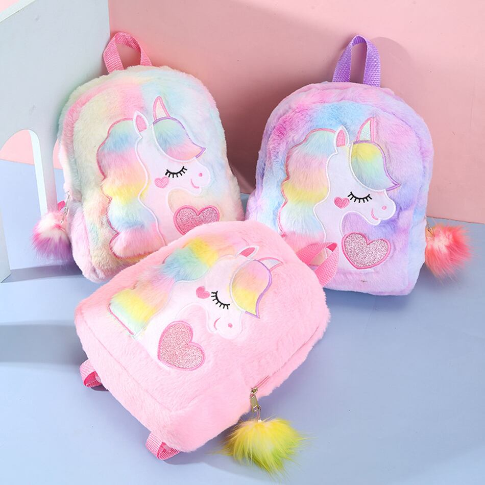 新作 かわいい漫画のバックパック女の子ぬいぐるみユニコーンバックパックかわいい毛皮のバックパック子供通学子供のギフトブックバッグ