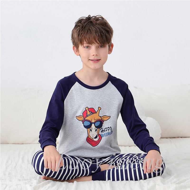 新作 春秋ボーイズパジャマセット十代の 5 に 14Years 綿の漫画パジャマ子供長袖ナイトウェア子供のホームウェア