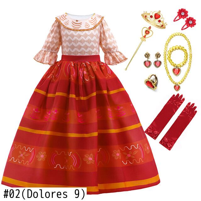 新作 2022 Encanto Dolores 女の子パーティーチャームドレスアップ Madrigal 子供コスプレファンシー Vestidos