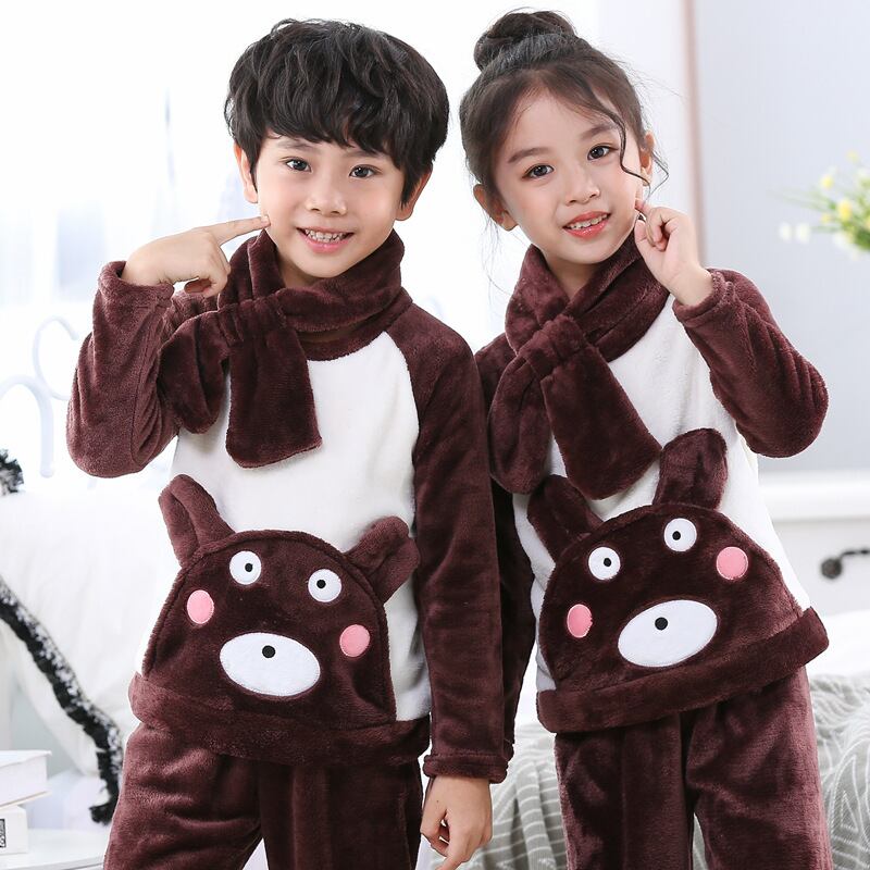 新作 冬のベビーパジャマセット Scraf ボーイズガールズパンダ服子供暖かいホームウェアフランネルフリース漫画パジャマ子供パジャマ