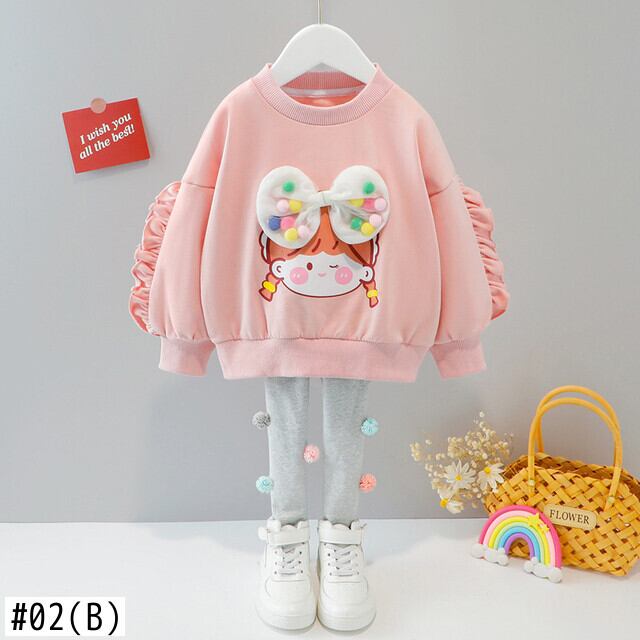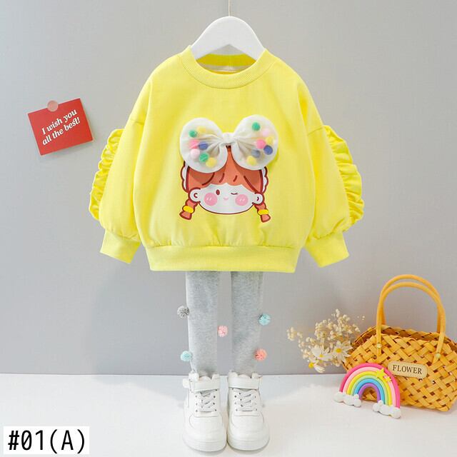 新作 女の赤ちゃんセット 2021 漫画のレースの弓ノット子供 Tシャツパンツ子供幼児綿の服の衣装