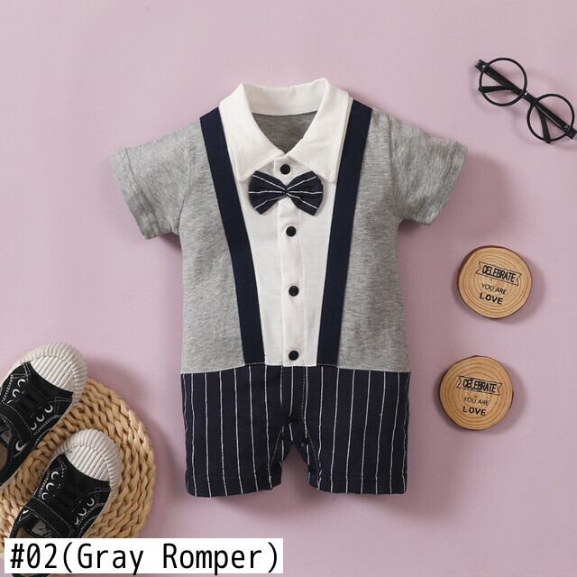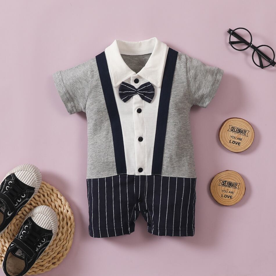新作 新生児 夏 紳士 ロンパース 0-18M 男の子 コットン ジャンプスーツ 幼児服 新生児 薄手 s