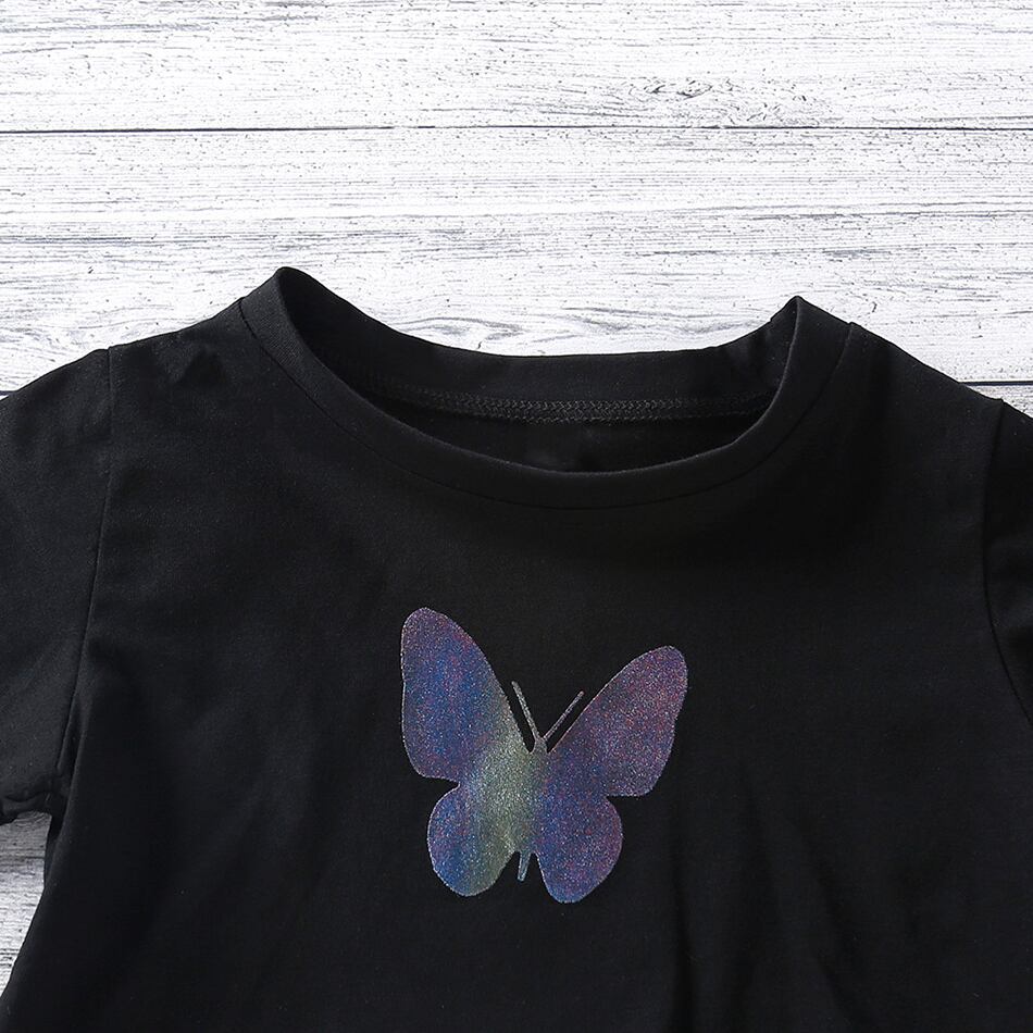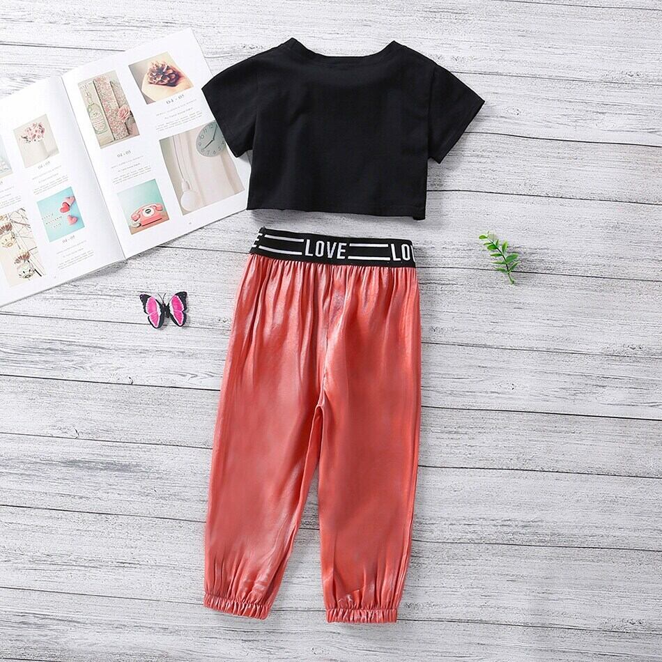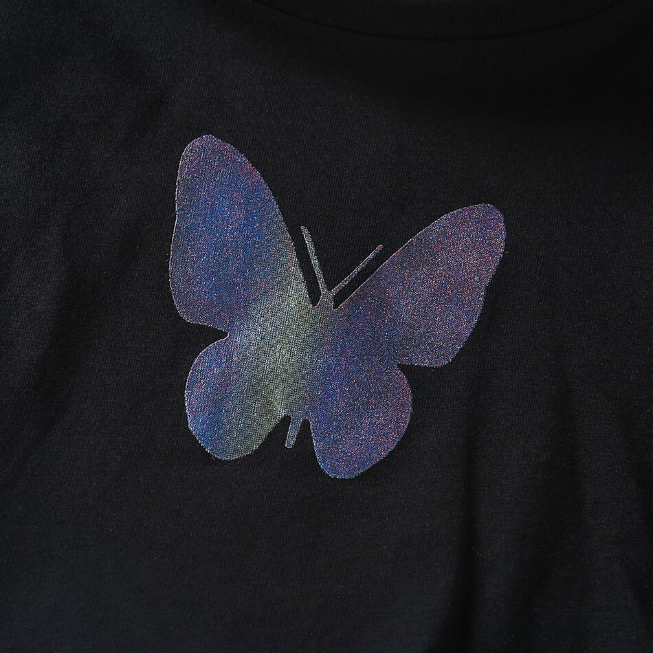 新作 キッズ ガールズ サマーセット バタフライプリント クロップトップ スポーツ ロングパンツ 18M-6Y 2ピース 衣装スーツ