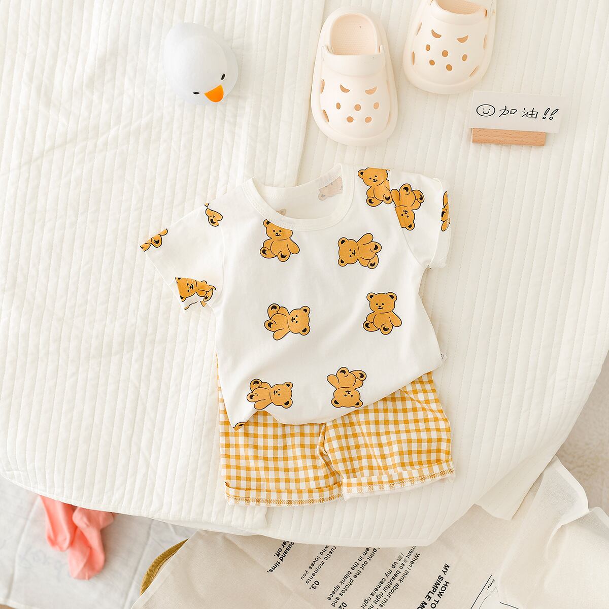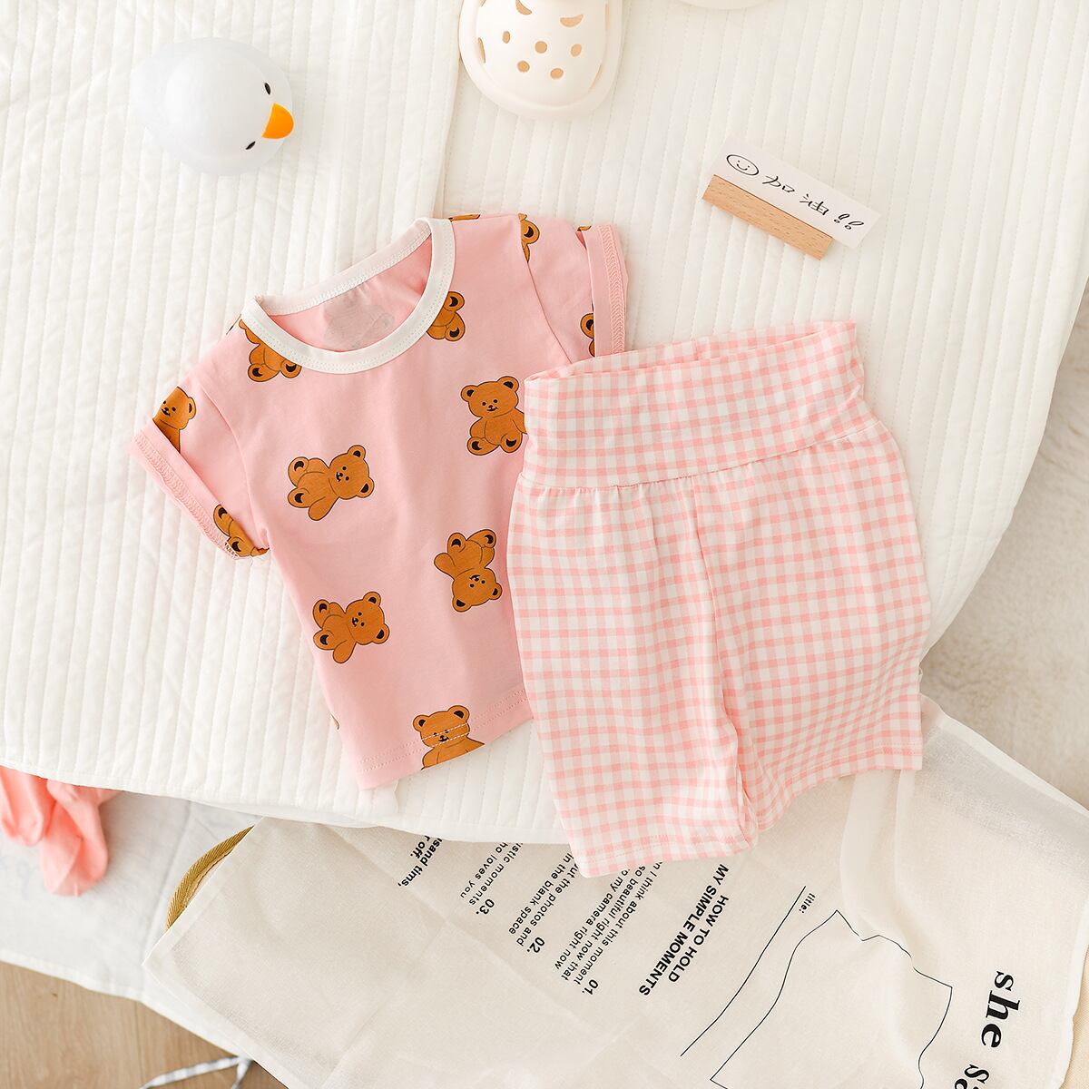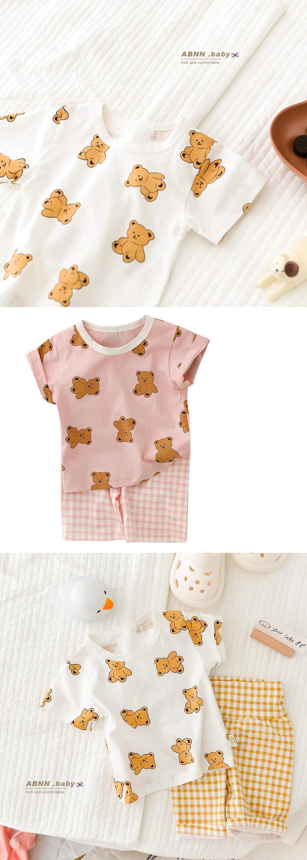 新作 2022 夏ベビーキッズスポーツ漫画クマ服セット男の子女の子セット s コットンベビー服 0-2Years