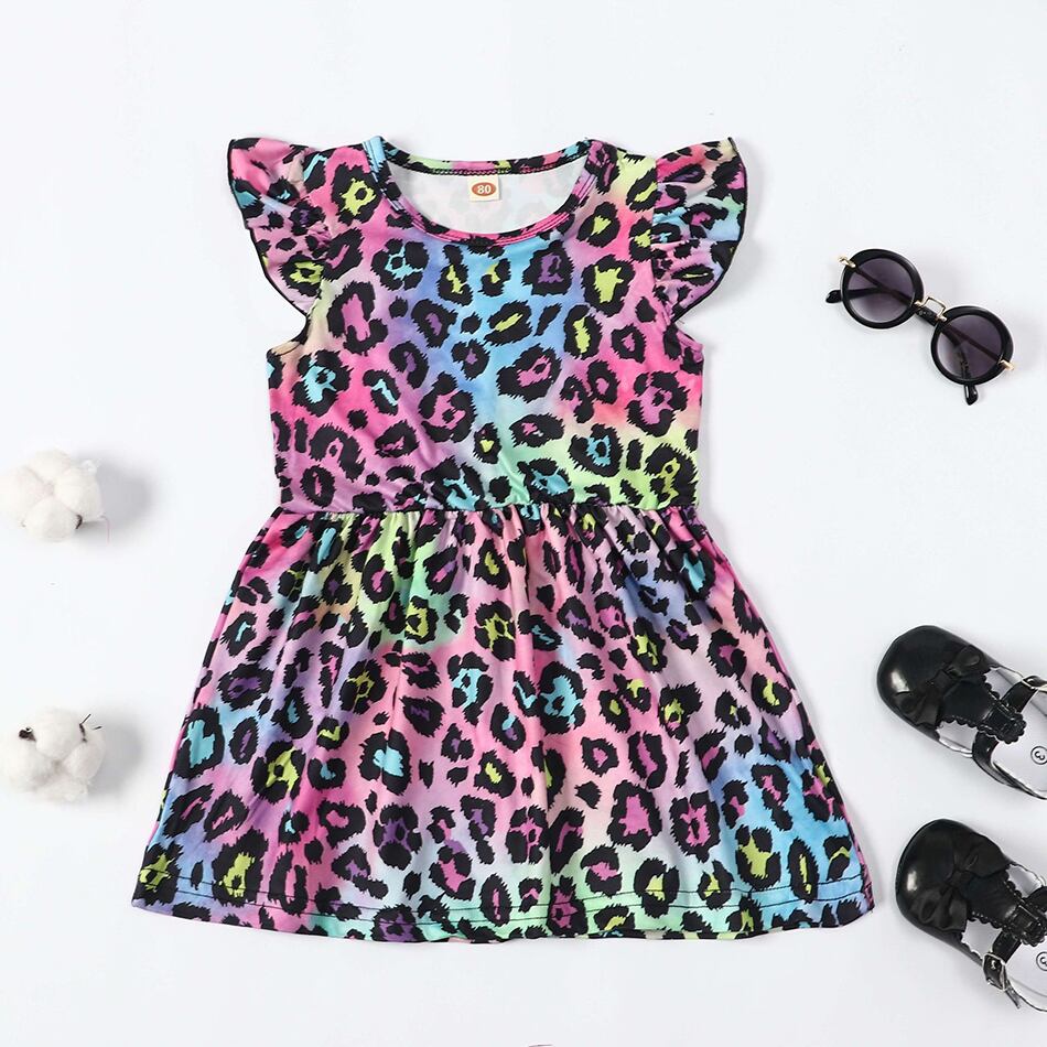新作 幼児の女の赤ちゃんドレスフライスリーブヒョウ絞り染めプリント着用子供の夏の服パーティードレス
