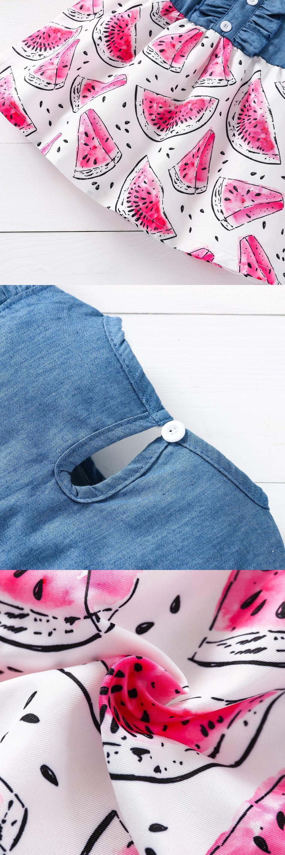 新作 ガールサマードレス幼児キッズベビーフリル袖デニムパッチワーク花柄フルーツ服 Vestido ビーチウェア