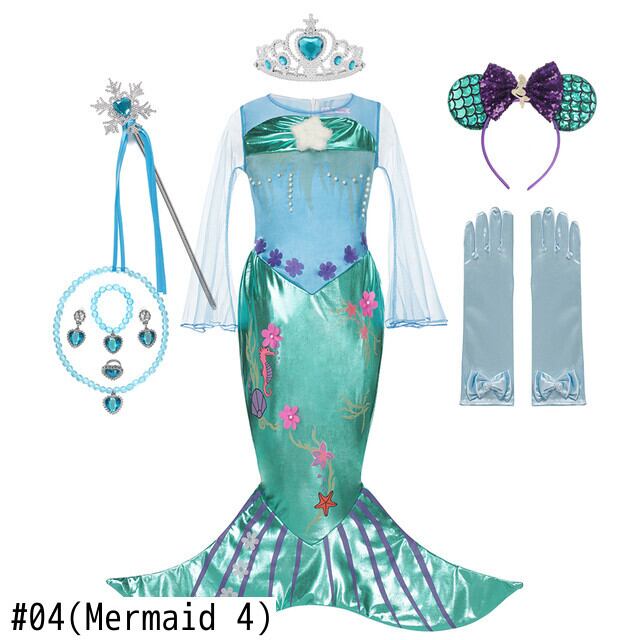 新作 女の子マーメイドドレス子供クリスマスリトルマーメイド子供カーニバル誕生日ファンシー衣装服かつら JYF