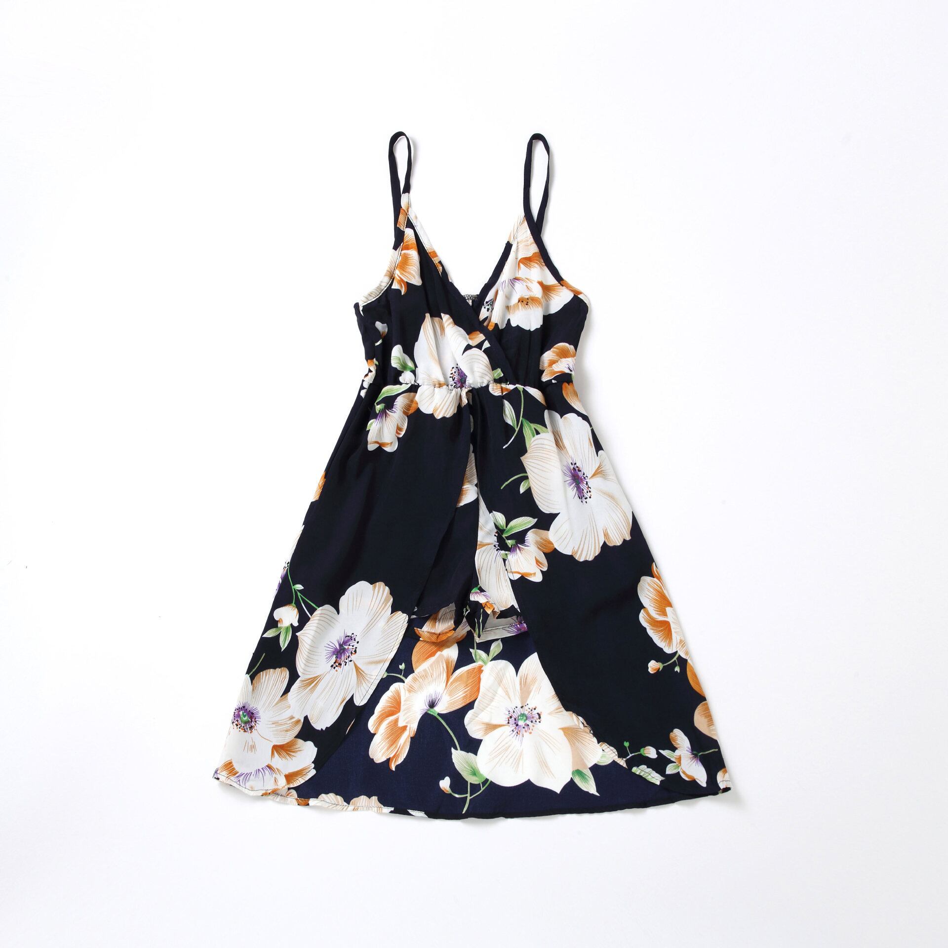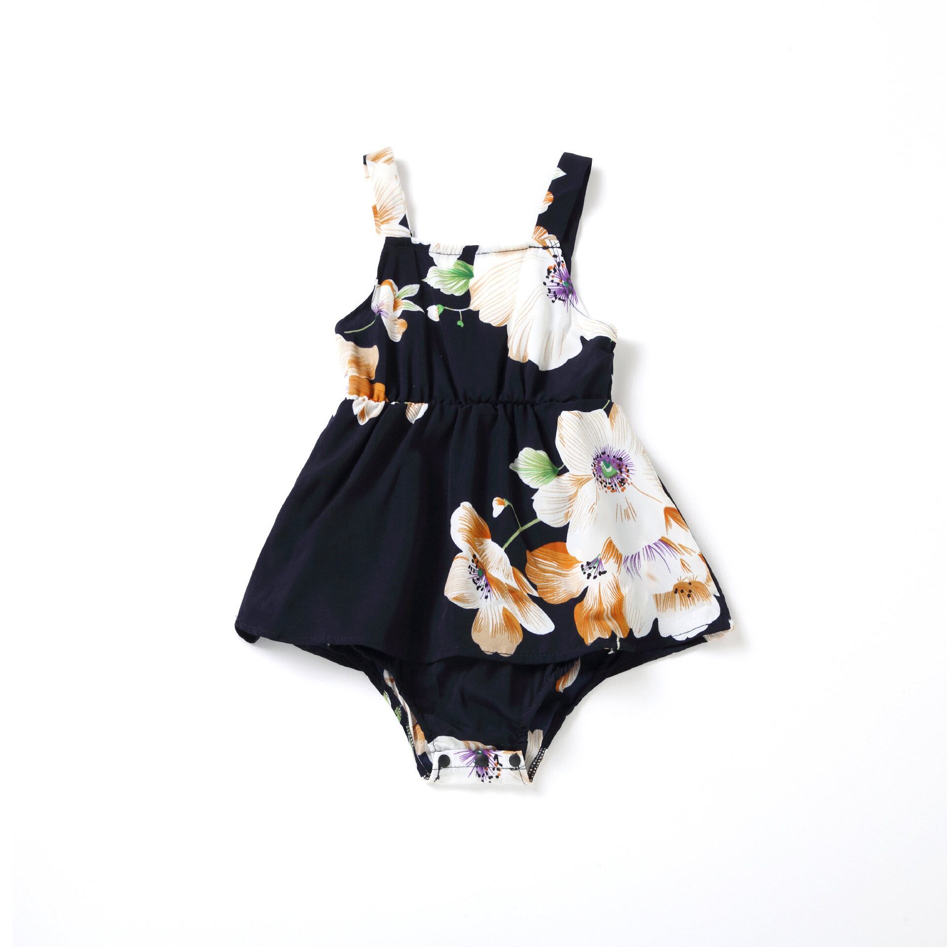 新作 夏家族マッチング服母娘ベビードレスノースリーブ花柄ファミリールック衣装生まれロンパースママ私ドレス
