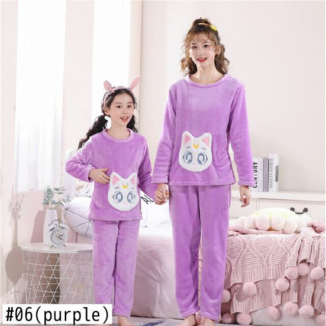 新作 子供のパジャマフランネルプルオーバートップパンツセット服冬家族マッチング衣装漫画フリースママ子供暖かいパジャマ