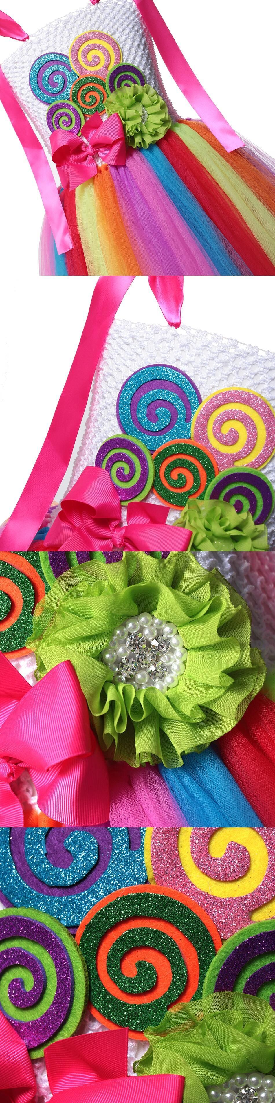 新作 女の子の花キャンディーカラフルなチュチュパーティードレスベビーキッズかぎ針編みチュールストラップ子供レインボードレス 2-12 年 JYF