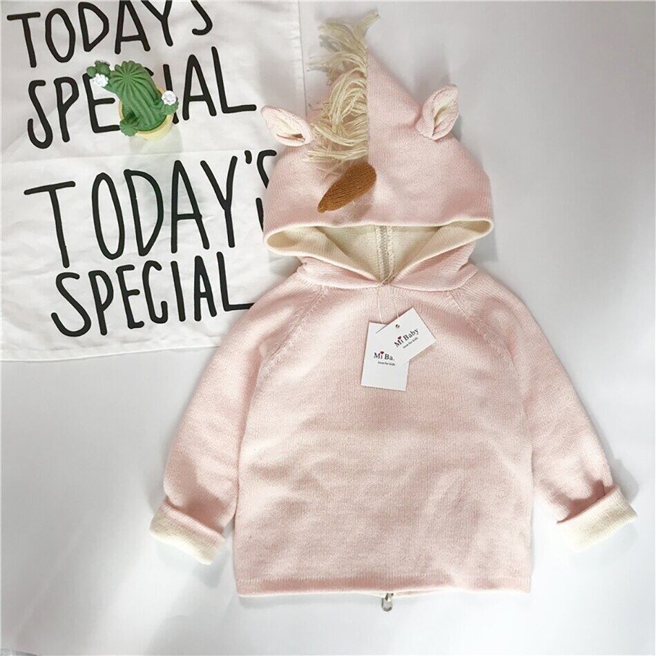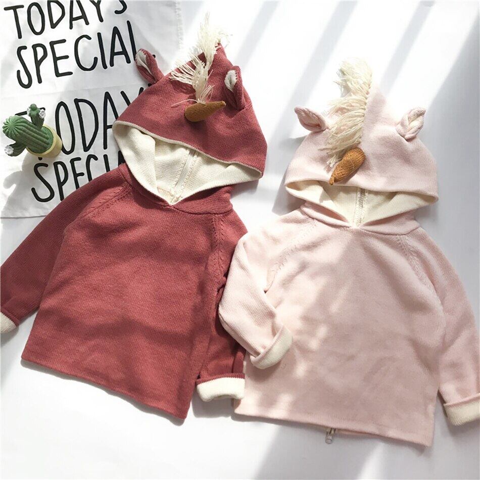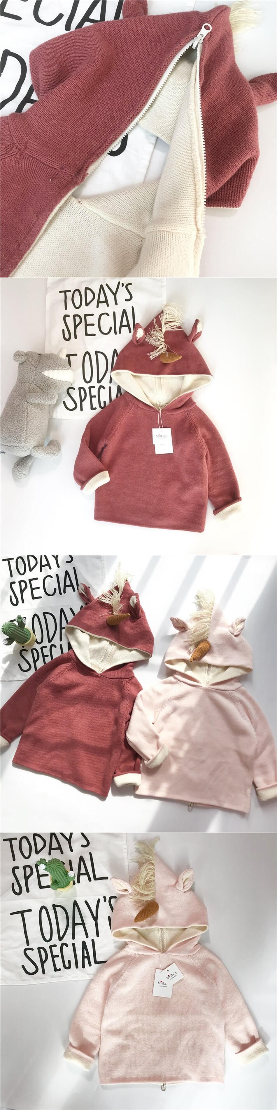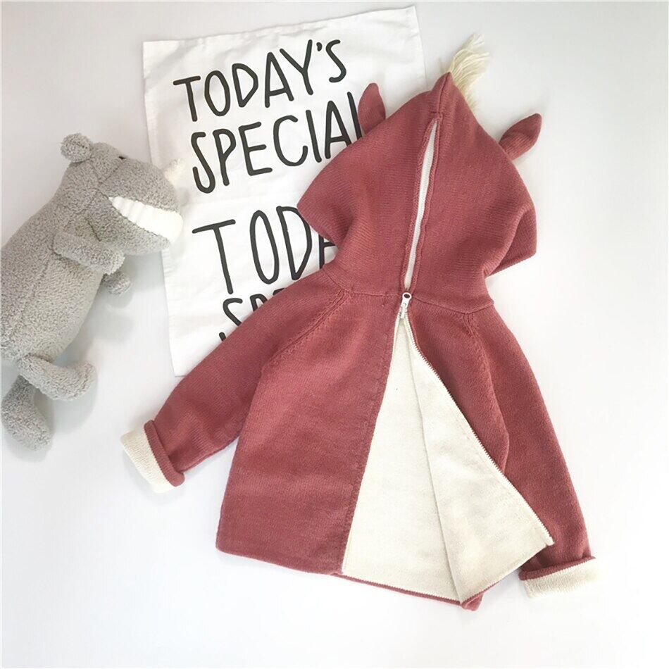 新作 赤ちゃんの男の子と女の子の秋服コットン パーカー注目のユニコーン ホーンと耳バック ジッパー幼児ニット コート