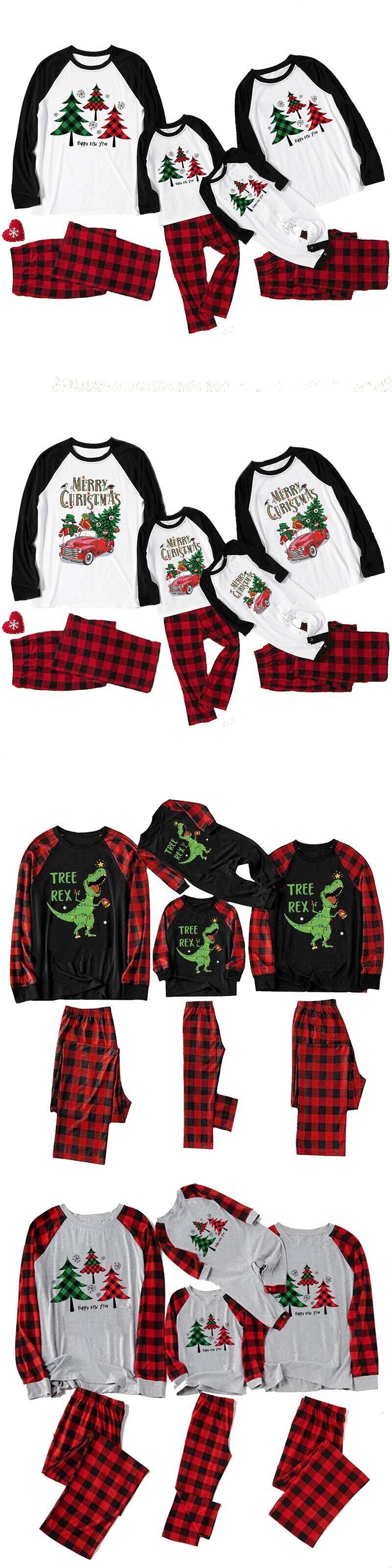 新作 クリスマス家族マッチングホームウェア母父ベビーキッズパジャマセット長袖パンツセット家族服恐竜パジャマ