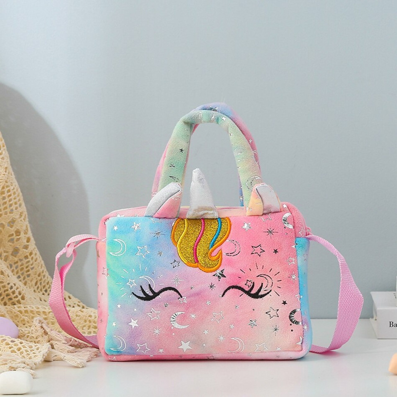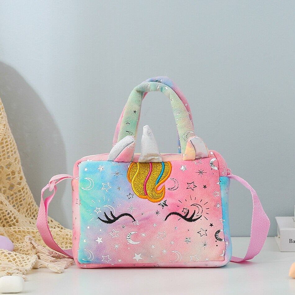 新作 キッズガールユニコーンハンドバッグ漫画ベビー絞り染め豪華なシングルショルダーバッグ子供のシングルショルダー収納袋
