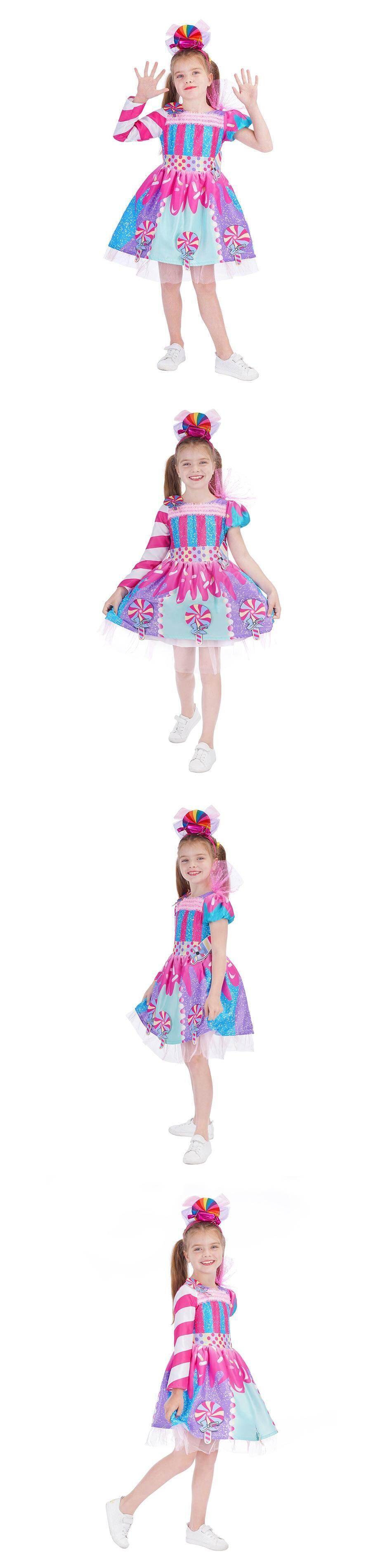 新作 女の子キャンディーチュチュドレス夏子供ロリポップドーナツ漫画パーティーカーニバルコスプレキャンディーレインボーウィング JYF