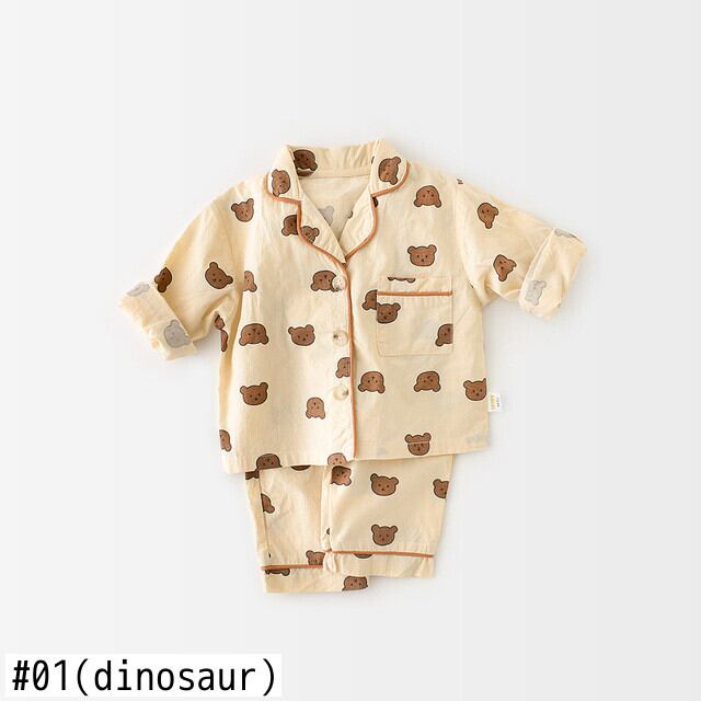 新作 2 個秋冬ベビーボーイズガールズ服キッズボーンパジャマ長袖クマカーディガンパンツ綿子供パジャマ