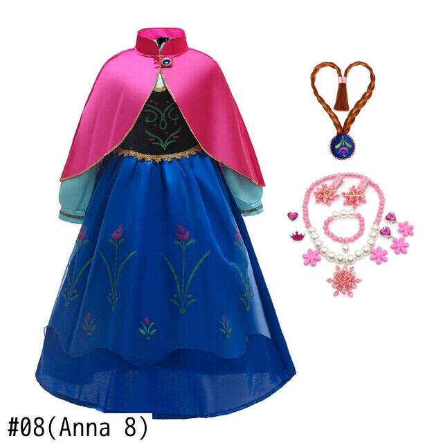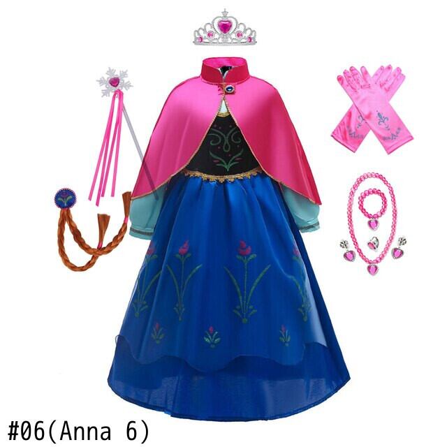 新作 女の子アンナコスプレドレス雪の女王アンナエルザ子供キッズカーニバルパーティーガウン服