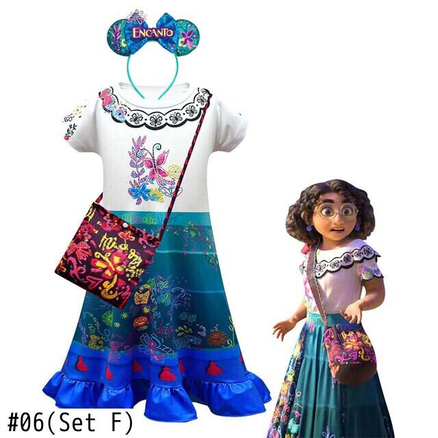新作 2022 Encanto ミラベル Madrigal ガールドレスコスプレファンシーカーニバルドレスバッグ Gles 出穂服