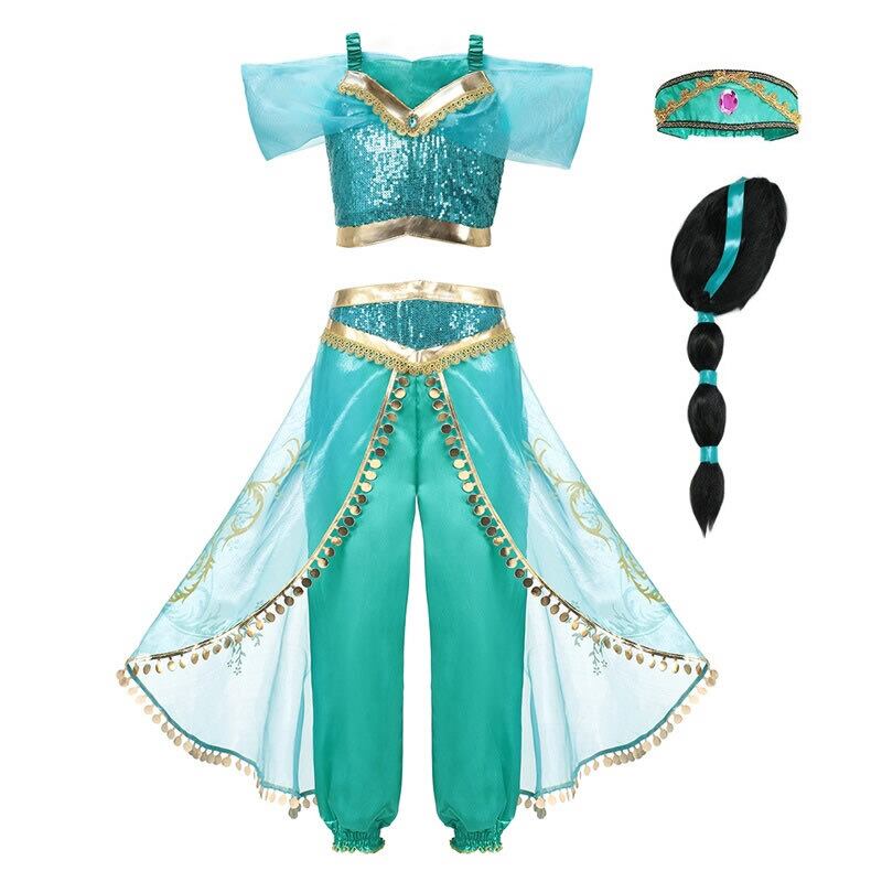 新作 MUABABY アラビアン ファンシー ドレスアップ 女の子 ノースリーブ スパンコール キッズ 2点セット 服