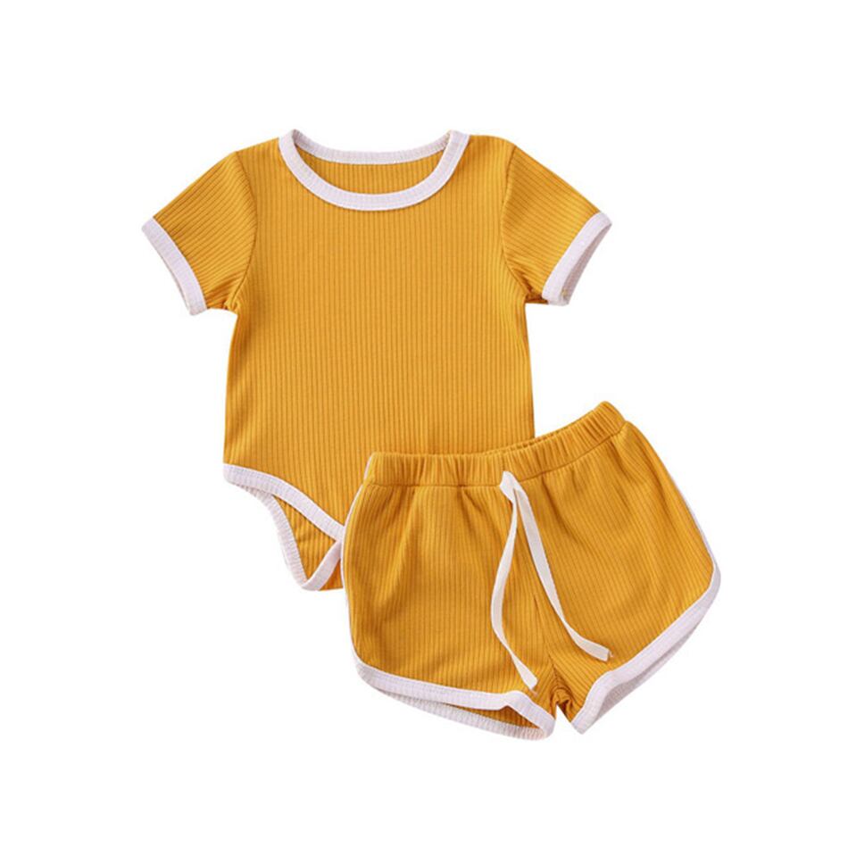 新作 夏の幼児キッズガールズ服セット新生児コットン半袖プルオーバー Tシャツショーツ 2 個のスーツ