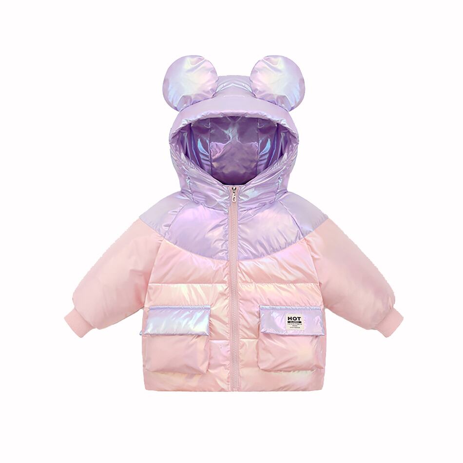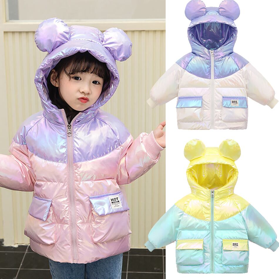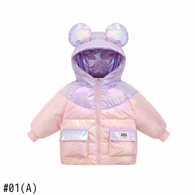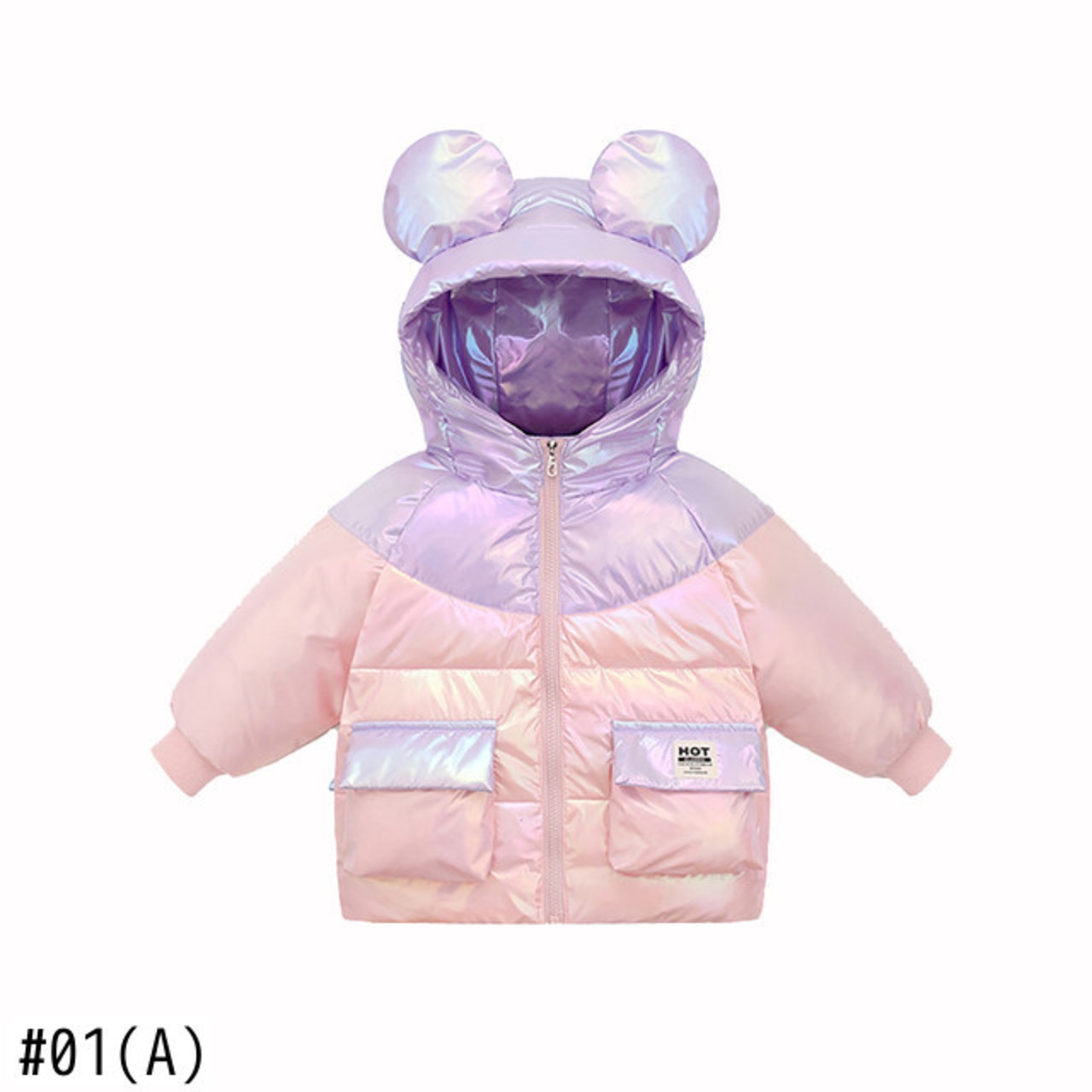 新作 幼児コート キッズ 女の子 冬 暖かい 無地 漫画 厚手 耳付き フード付き ダウンジッパージャケット 子供用