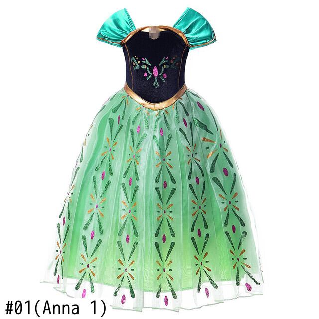 新作 女の子グリーンアンナドレス夏の子供雪の女王パーティー子供の誕生日パーティーの服 2-10 年