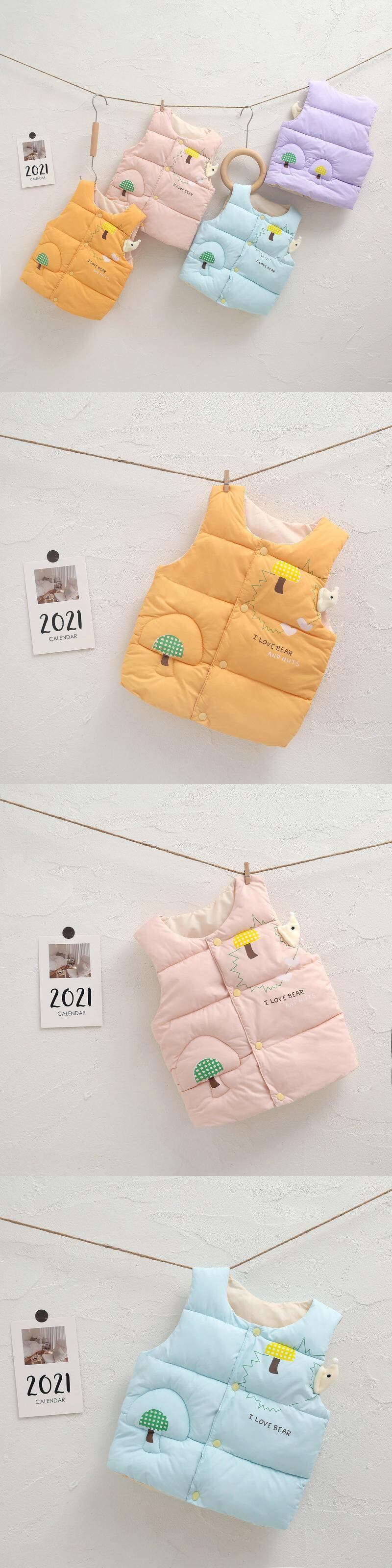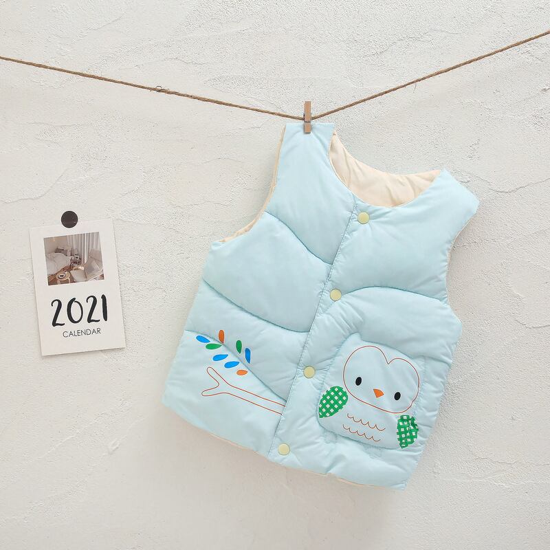 新作 2-8Year 子供服秋冬ダウンベストガールズボーイズ漫画動物暖かいコートノースリーブジャケットベビーキッズ上着