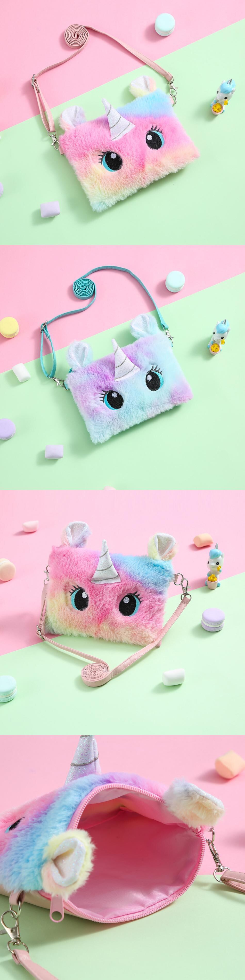 新作 子供女の子ショルダーバッグかわいいユニコーン動物メッセンジャーバッグ子供キー小銭入れかわいいミニぬいぐるみ財布