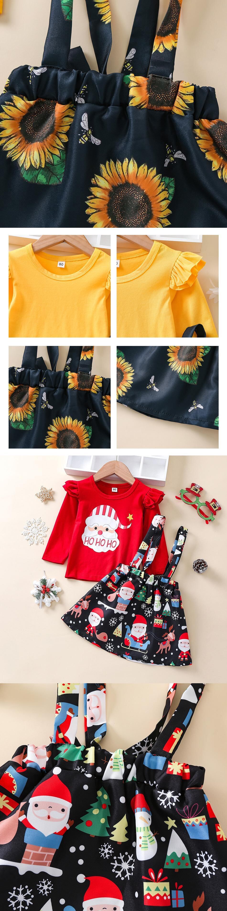 新作 クリスマス幼児子供女の子服セットサンタ Tシャツトップスチェック柄スカート衣装クリスマスカボチャ子供