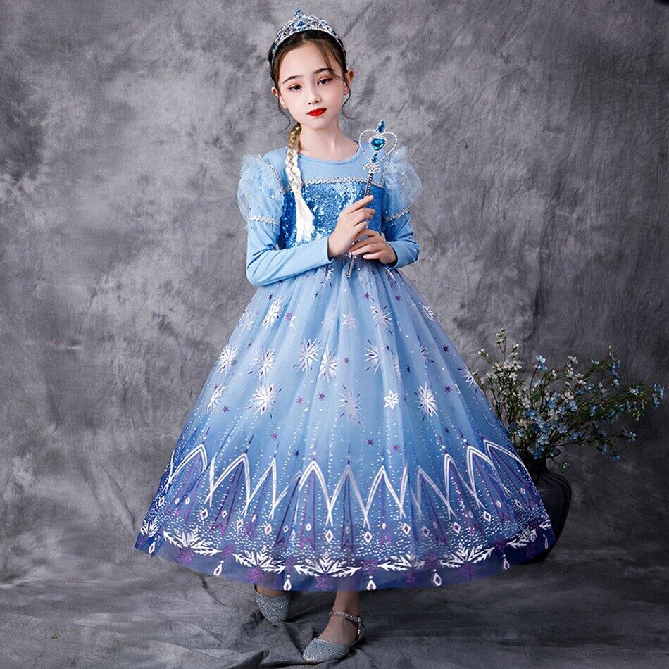 新作 エルザコスプレドレス雪の女王 2 子供ドレス女の子クリスマスパーティー服 Chidlren スパンコールドレスアップローブ冷凍
