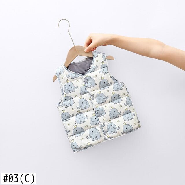 新作 ベビーベストノースリーブ漫画ダウン服ジャケット少年少女コート子供屋外ベストチョッキ子供生き抜く JYF