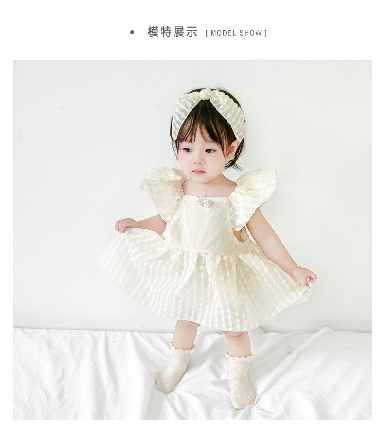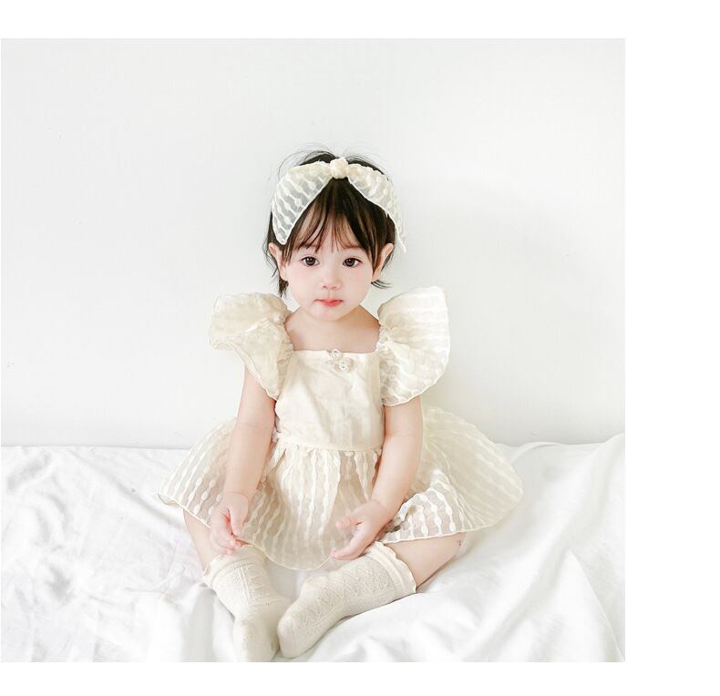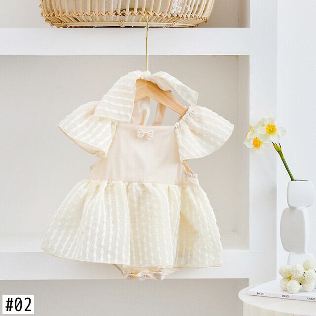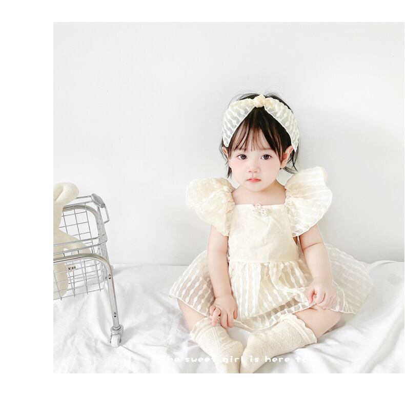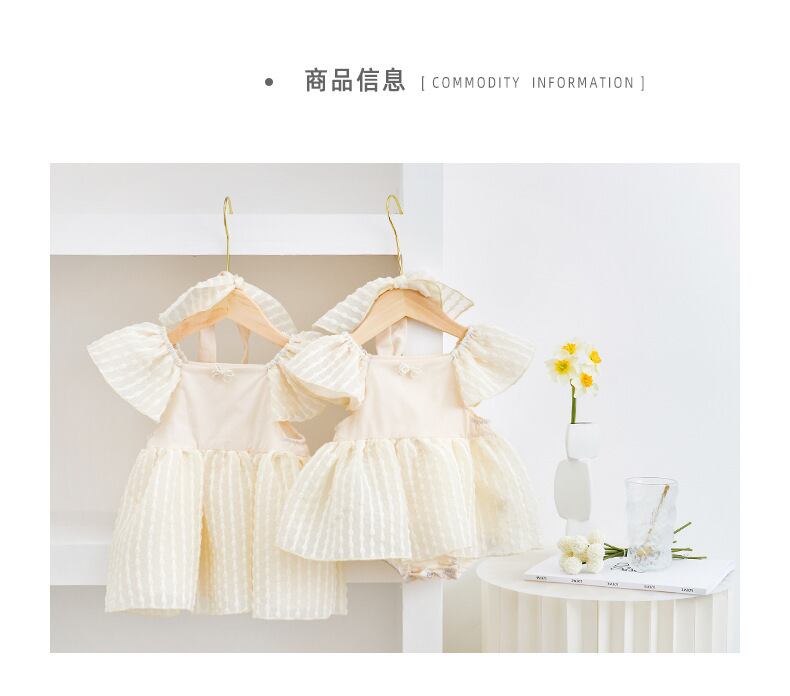 新作 女の赤ちゃん姉妹服パフスリーブ無地チェック柄プリント生地ロンパース 2 個甘いスクエアネックボウスリップドレスヘアバンド