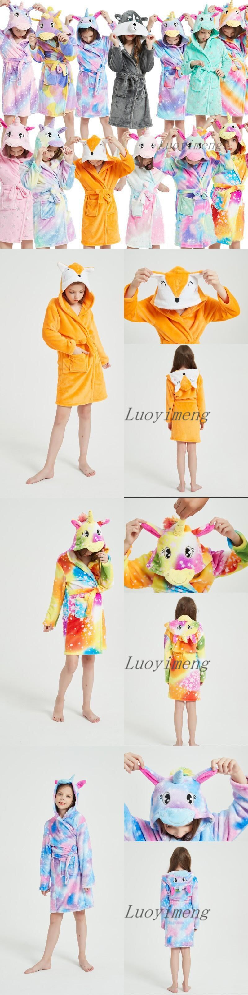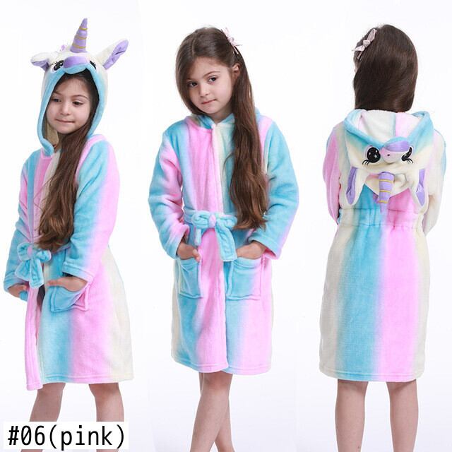 新作 女の赤ちゃん漫画バスローブ動物フード付きパジャマ子供ユニコーンステッチビーチタオルボーイズバスローブパジャマ子供ネグリジェ