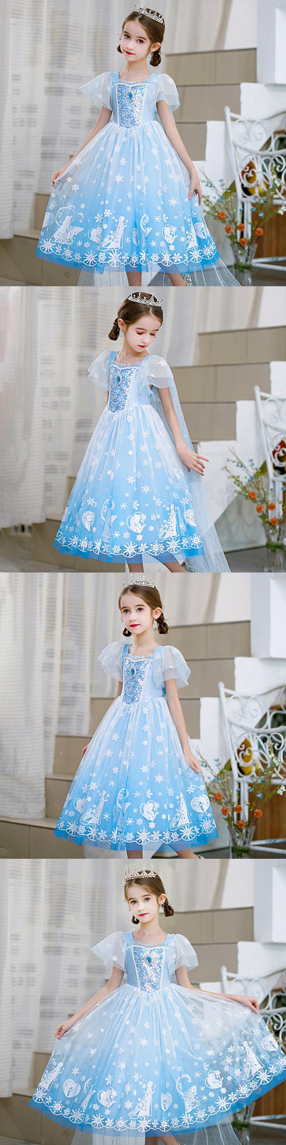 新作 冷凍女の子エルザコスプレドレスファンシーガール雪の女王の誕生日パーティー子供服マント