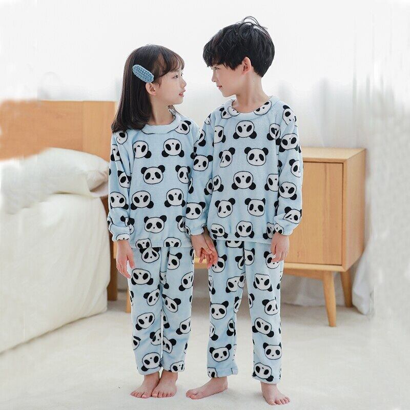 新作 フランネル子供パジャマ子供パジャマ少年少女ナイトウェア冬暖かい長袖パジャマ子供服スーツ子ホームウェア