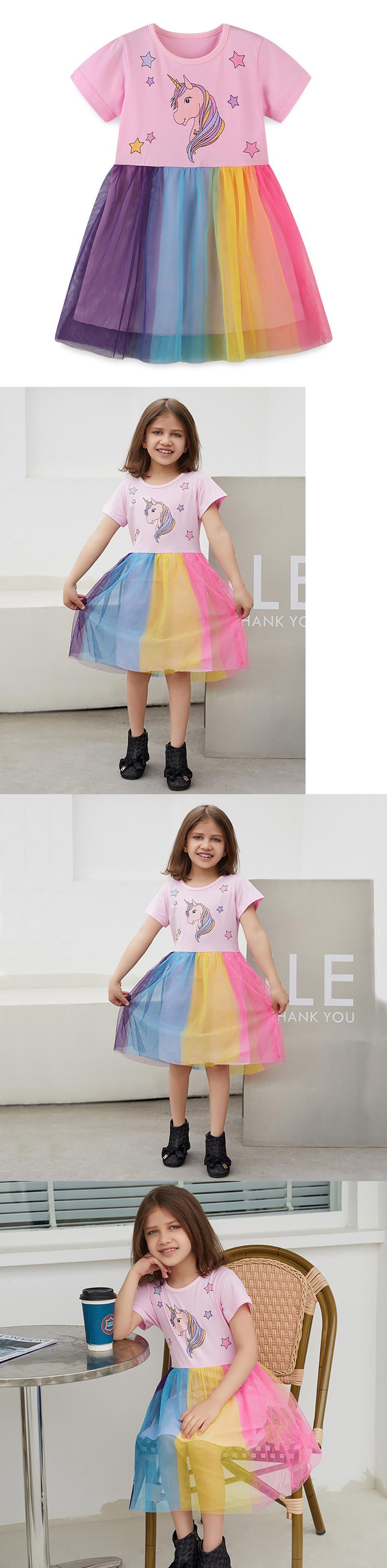新作 2022 ガールズサマーキッズユニコーンプリント衣装チュールドレス幼児子供ドレス 2-7 年