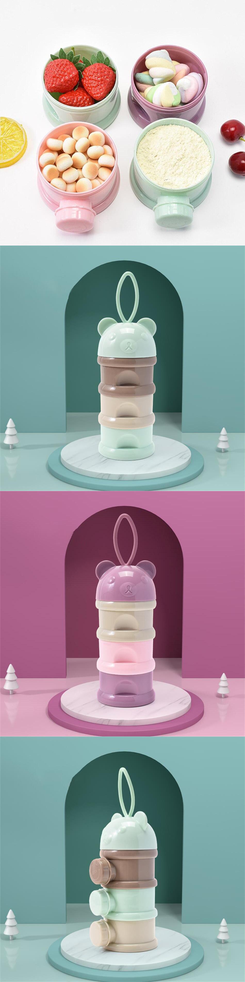新作 3/4Layer ベアスタイルポータブルベビーフード収納ボックス複数の開口部シリアル漫画幼児粉ミルクボックスよちよちスナックコンテナ