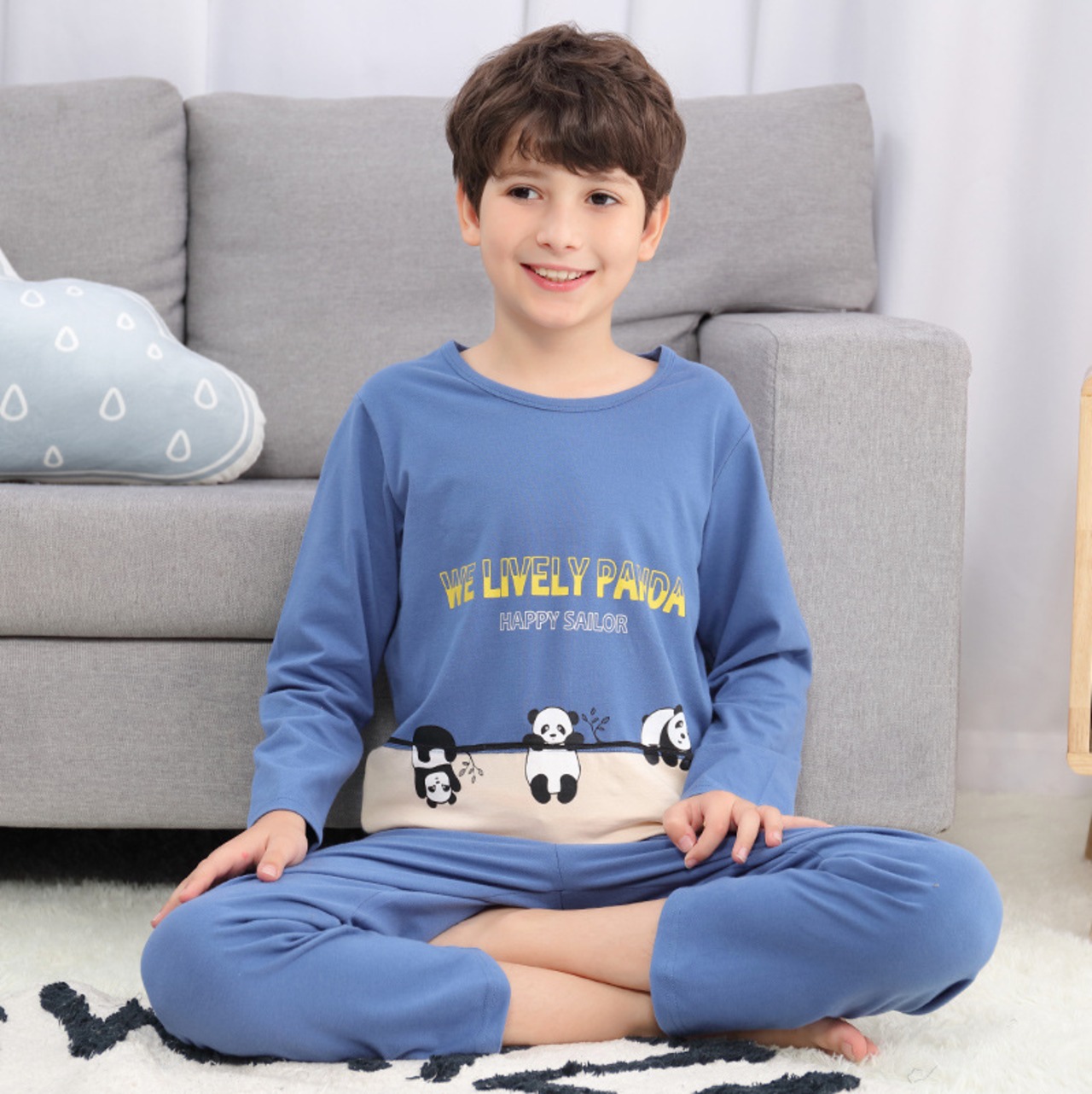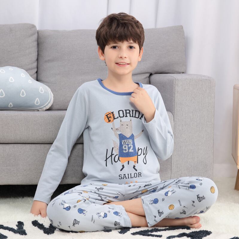 新作 十代の若者たちの服子供セットビッグボーイズパジャマセットボーイズコットンパジャマフルスリーブパジャマキッズホーム服 4-18Y
