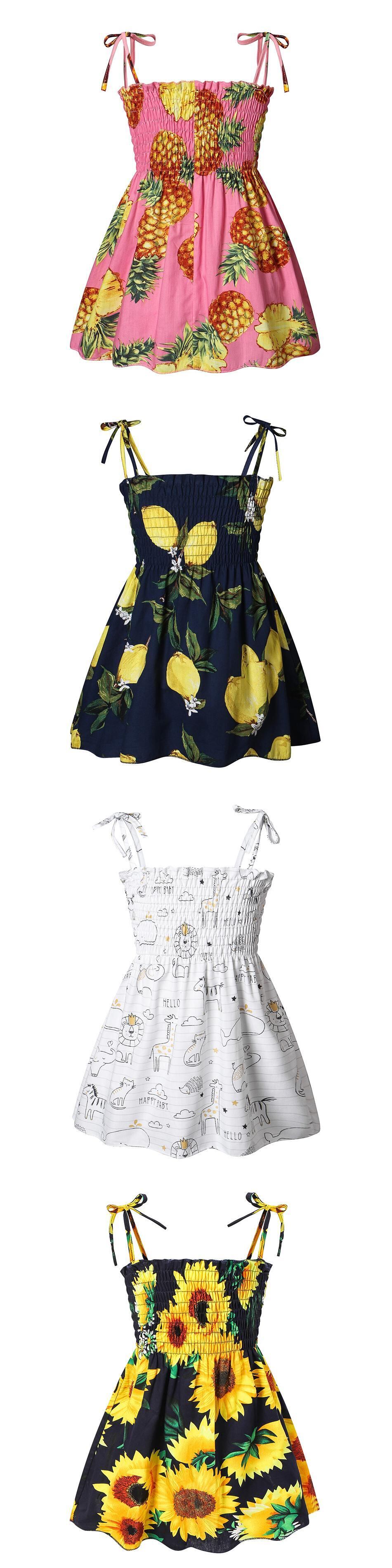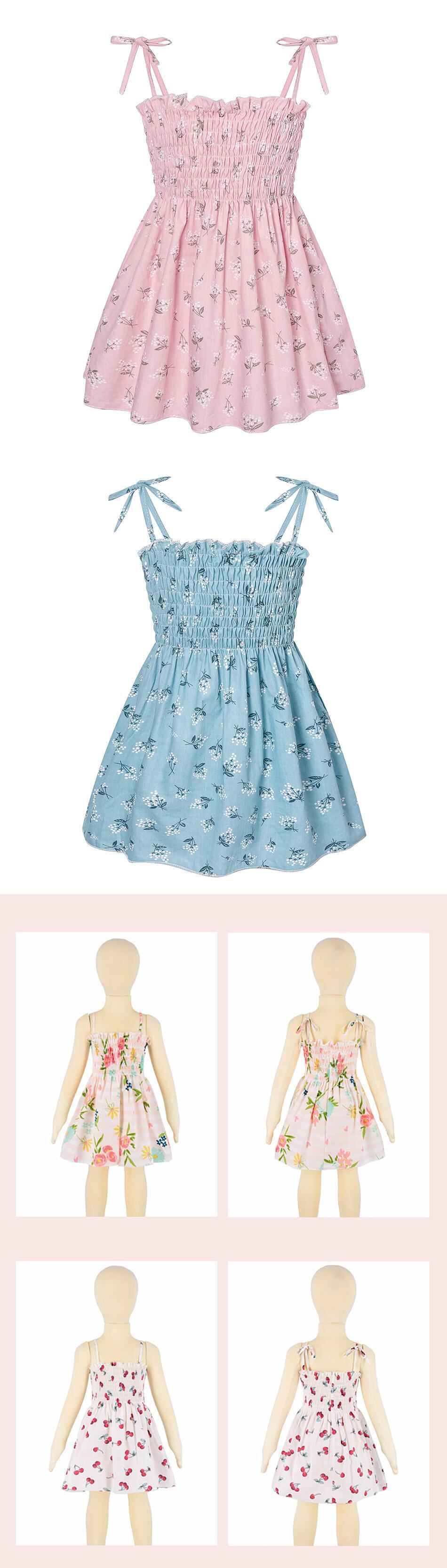 新作 自由奔放に生きる女の子夏のベビービーチドレス花背中の開いたスリング服子供ドレス 18M-5Y