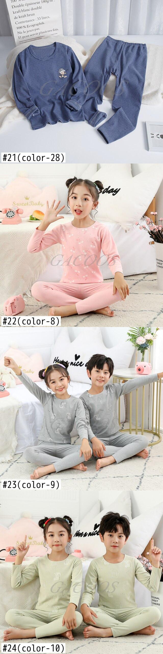 新作 女の赤ちゃん服キッズボーイズパジャマセット秋冬熱下着シームレススーツ子供ティーントップス + パンツスーツ
