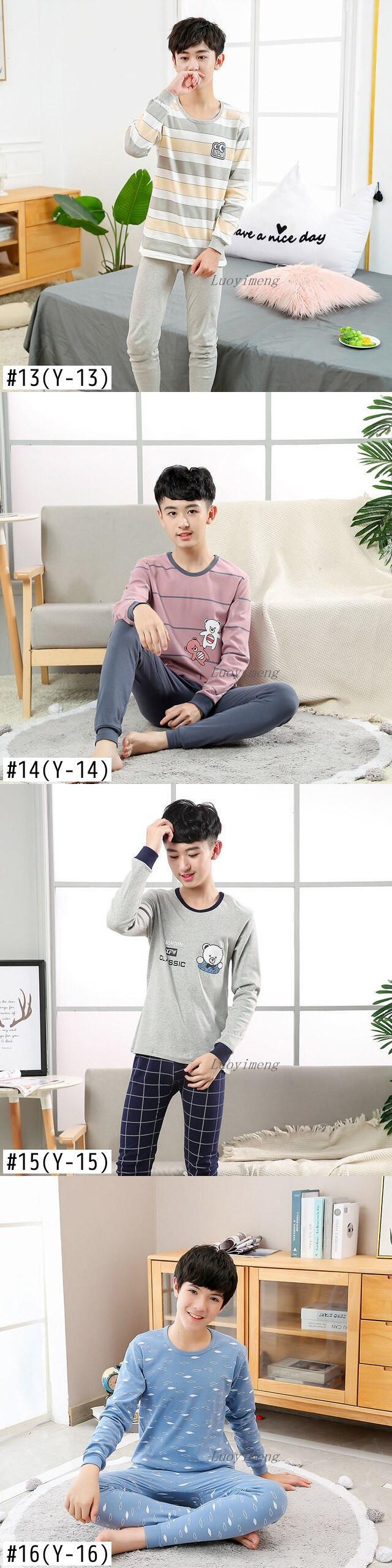 新作 秋の男の子服コットンボーイズパジャマセット子供スーツナイトウェアビッグボーイズ服パジャマ十代の少年ホームウェアスーツ