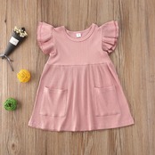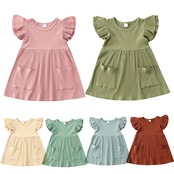 新作 2022 夏子供女の子ドレスリブニット女の子フリルドレスデイリーキッズ 1-4Y