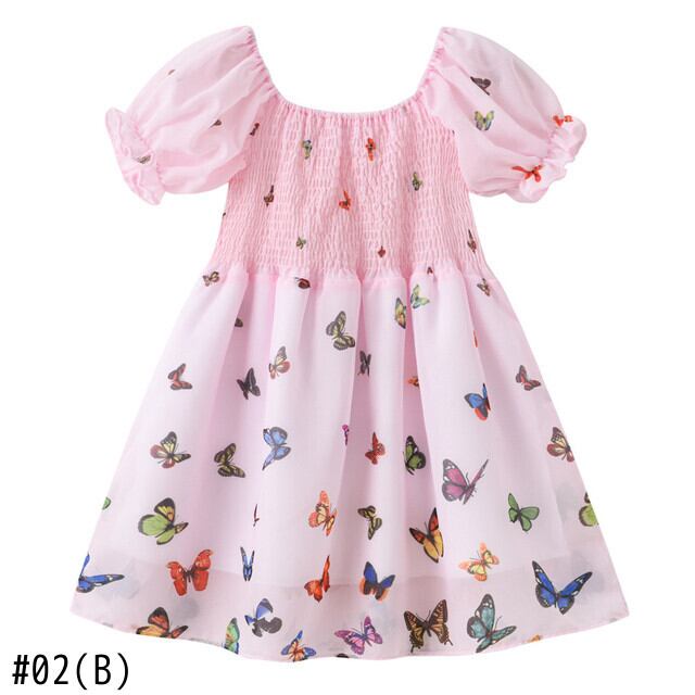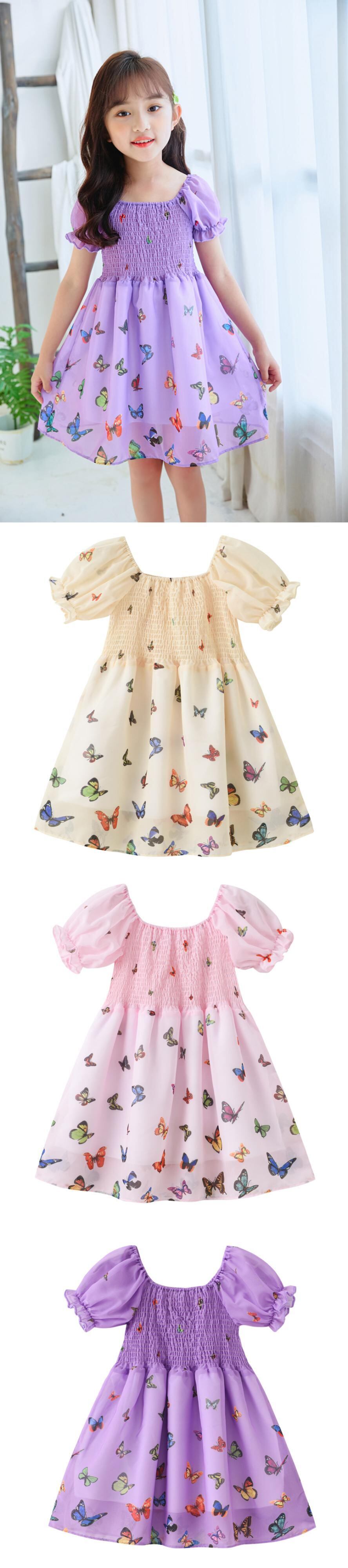 新作 夏の幼児の女の子ドレス キッズ ベビー女の子蝶プリント Vestido 半袖フリル子供