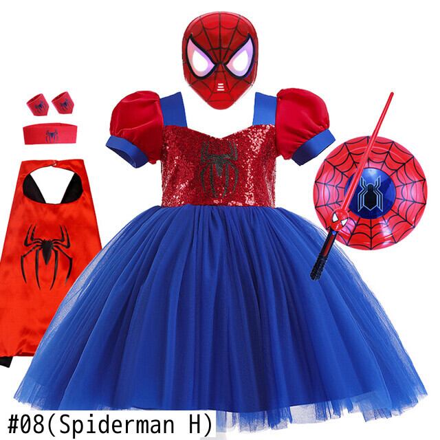 新作 スパイダーマンコスプレチュチュドレスの女の子子供の日 Vestidos パーティースパイダーメッシュ子供服