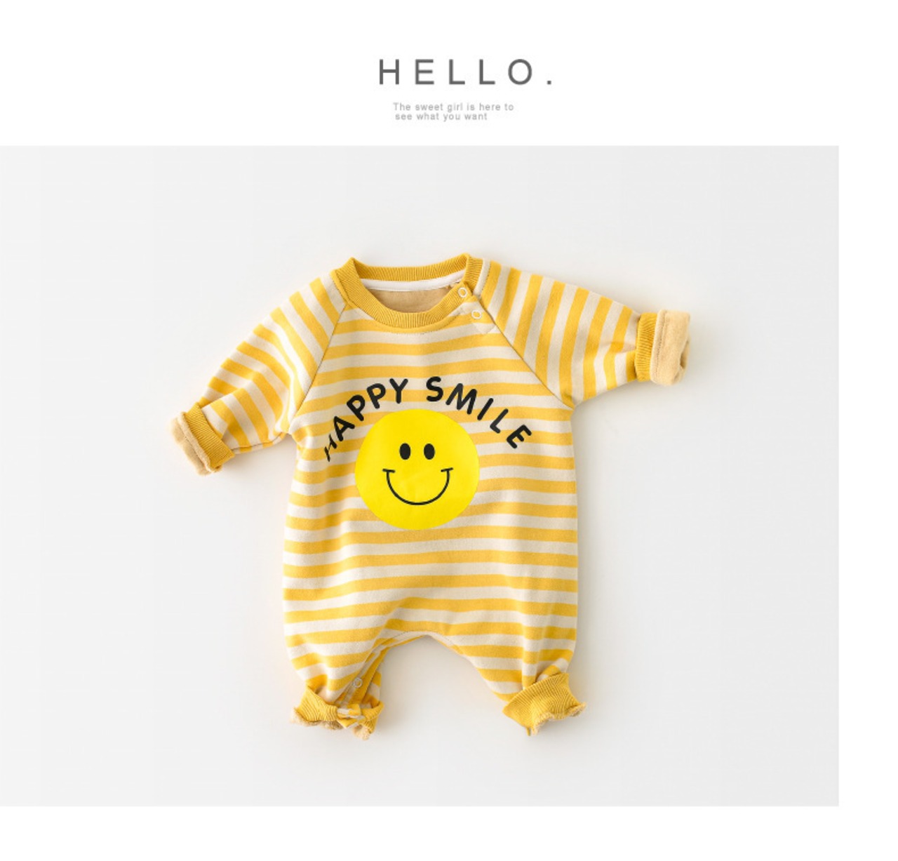 新作 ベビーロンパースベビー服バナナベビージャンプスーツ笑顔幼児ガールボーイズパジャマ新生児ボディスーツ秋冬パジャマオーバーオール