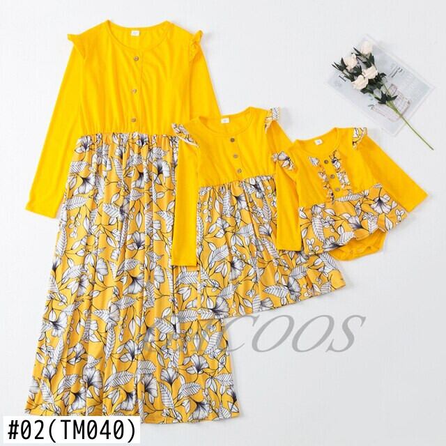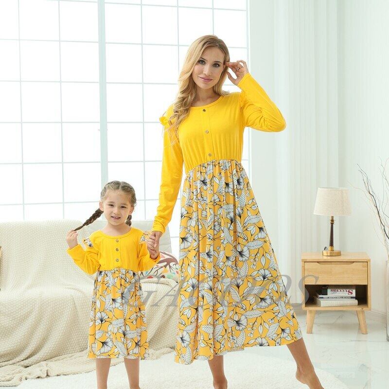 新作 女性長袖 Vestidos 2022 春ファミリーマッチング服女の子ドレスベビーロンパース花ママ娘ファミリールック衣装