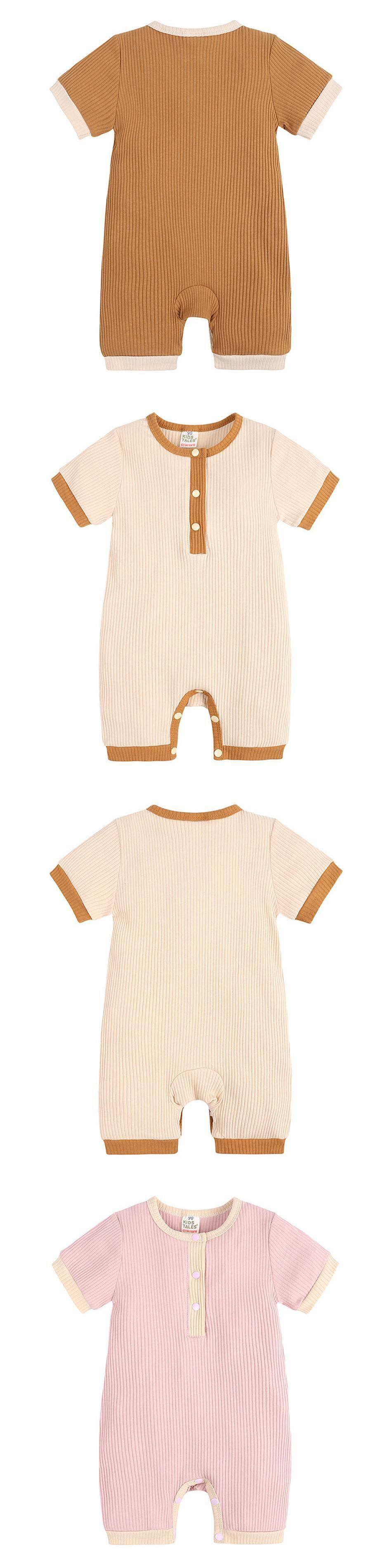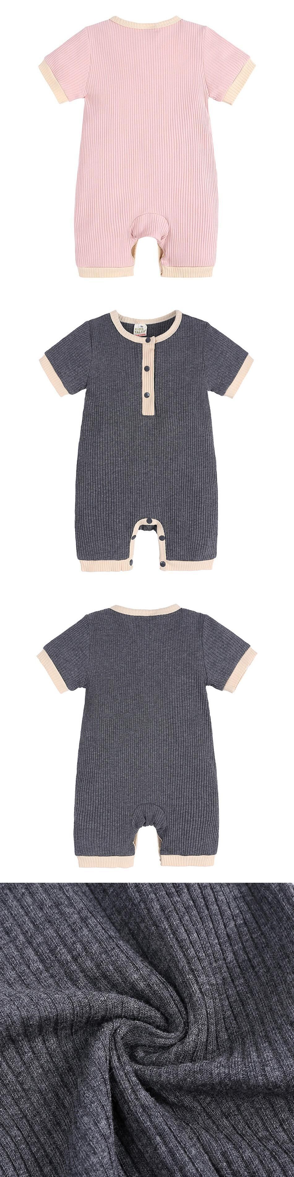 新作 夏のベビー服女の子ロンパース無地男の赤ちゃん服綿半袖新生児男の子ロンパース 3-18Months