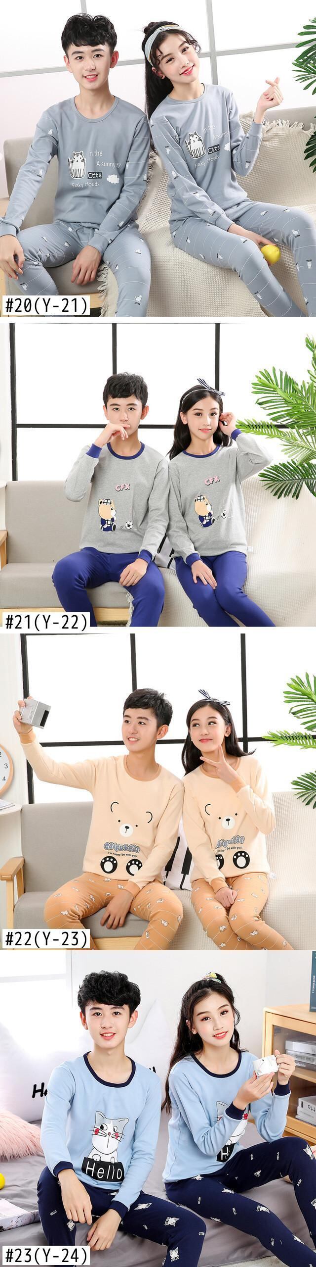 新作 9-19Y パジャマビッグボーイズガールズパジャマナイトウェア冬秋の綿の服セット長袖パジャマ子供十代の服