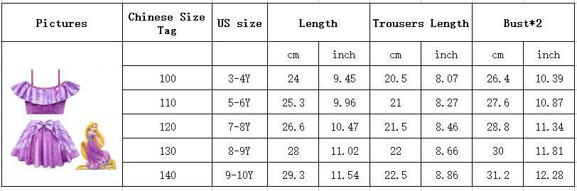 新作 ラプンツェル女の子ビキニ水着ビーチウェア服 2 個子供水着子供スーツ 2-10 歳