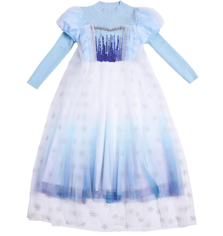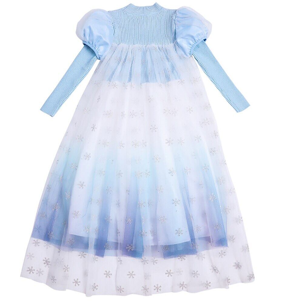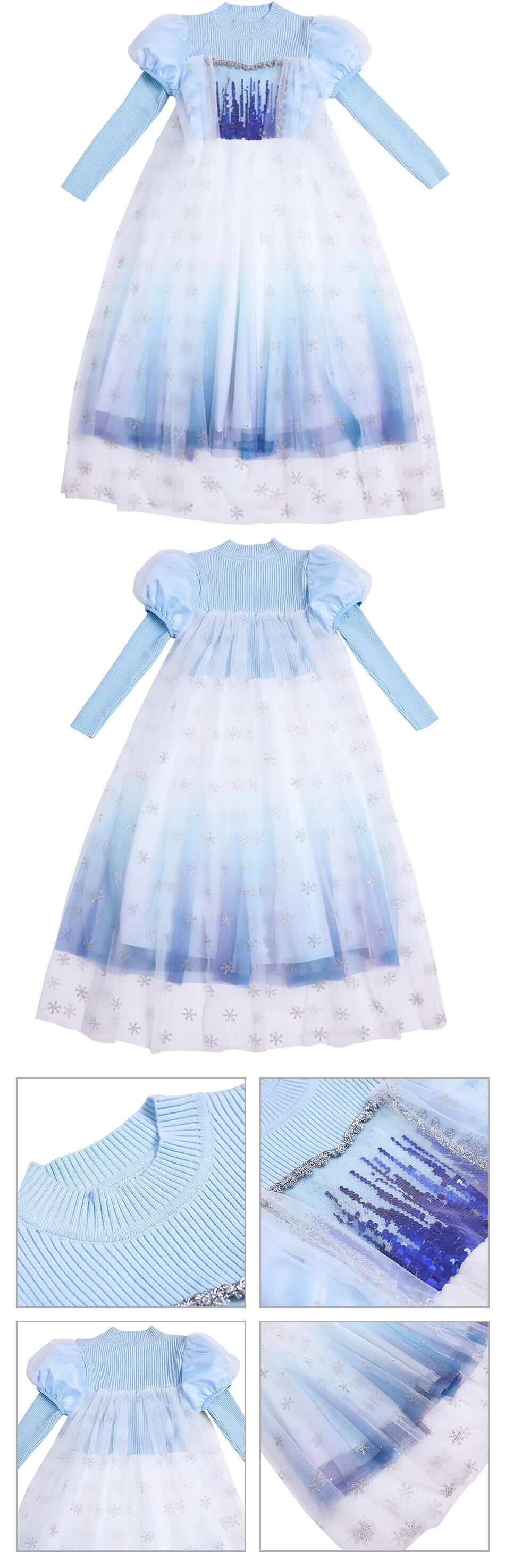 新作 ファンシー エルザ パーティー ドレス女の子暖かい秋冬長袖フロック メッシュ ケープ子供カーニバル エルザ