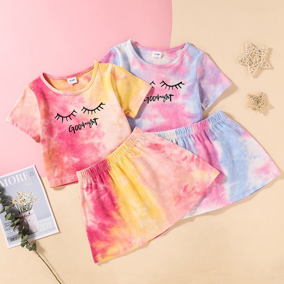 新作 夏の子供の女の子衣装絞り染め綿 2 個セット半袖 Tシャツスカート子供女の赤ちゃん 18M-6Years